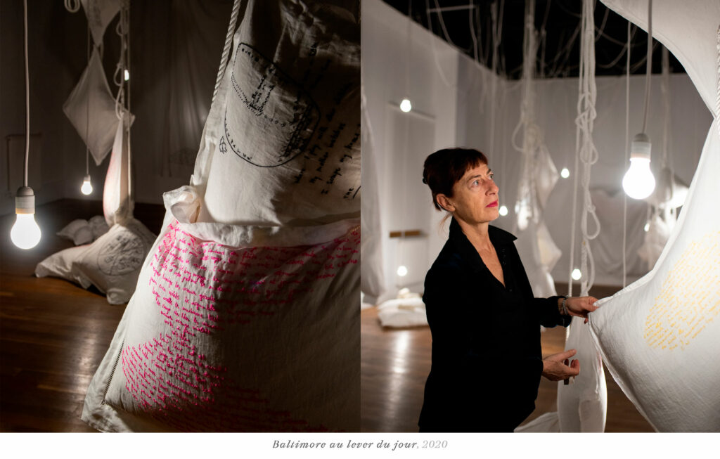 Installation de sculptures dans l’espace, mises en lumière par intermittence, comme l’inconscient qui émerge, dans l’instant se révèle et nous éclaire.